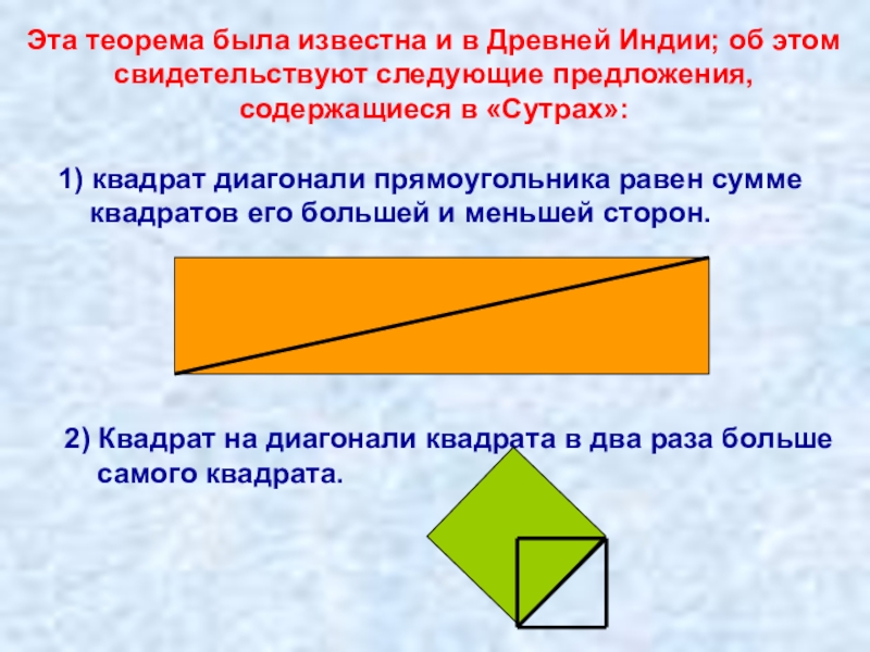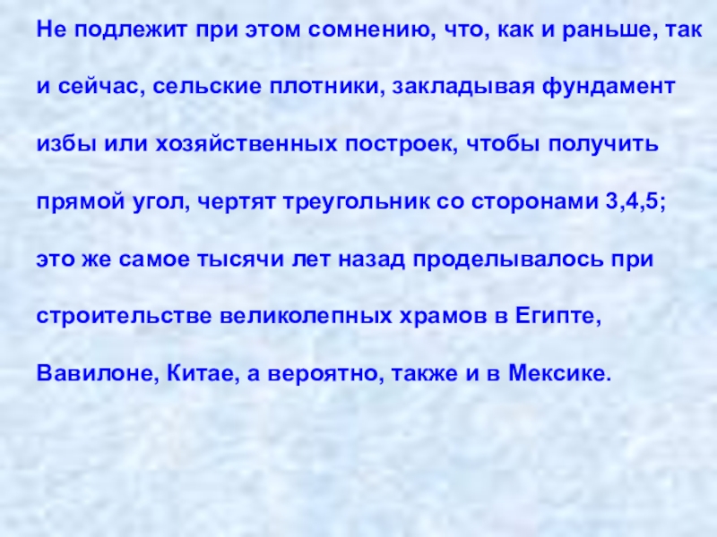 Теорема Пифагора издавна широко применялась в