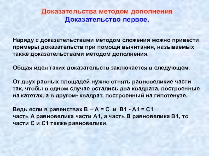 доказательств при помощи вычитания, называемых также доказательствами методом дополнения.