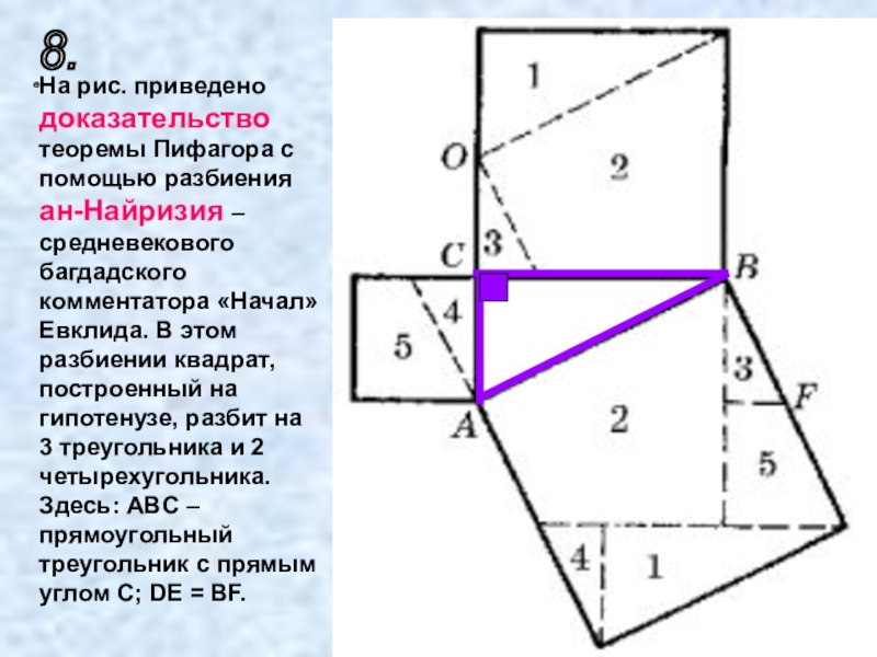 3. прямоугольник 6 и квадрат 8, взятые вместе, равновелики прямоугольнику 1 (заштрихован);;