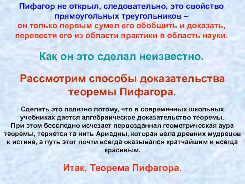 Слайд 6Не найти никакой другой теоремы, заслужившей