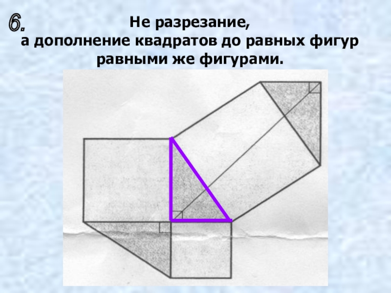 2. четыре треугольника 1,2,3,4 равновелики двум прямоугольникам 6 и 7;