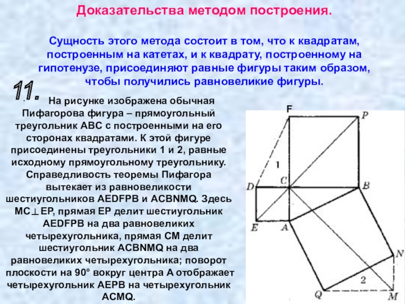 Слайд 43Поясним этот метод на примере. На рис. к обычной пифагоровой фигуре