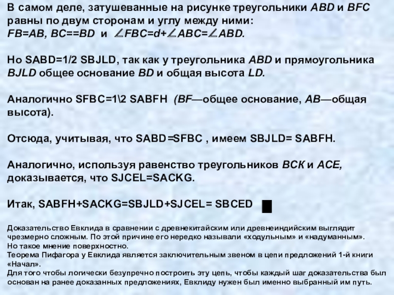 Теорема Пифагора у Евклида является заключительным звеном в цепи предложений 1-й книги