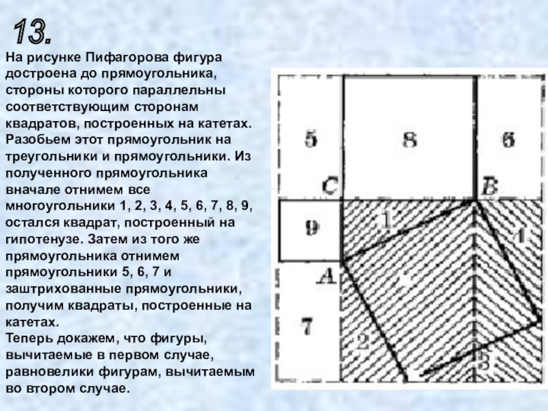 — квадрате на гипотенузе, равновеликом двум квадратам на катетах.
