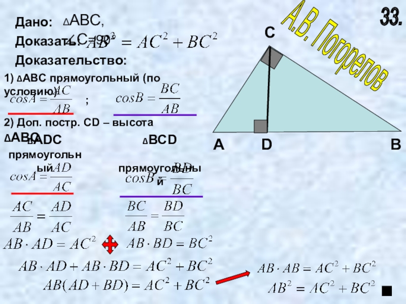 2) Доп. постр. СD – высота ∆АВС