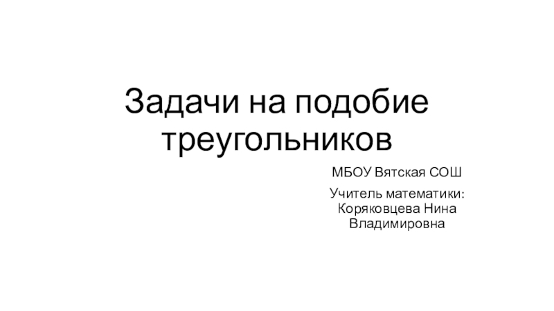 Задачи на подобие треугольниковМБОУ Вятская СОШ Учитель математики: Коряковцева Нина Владимировна