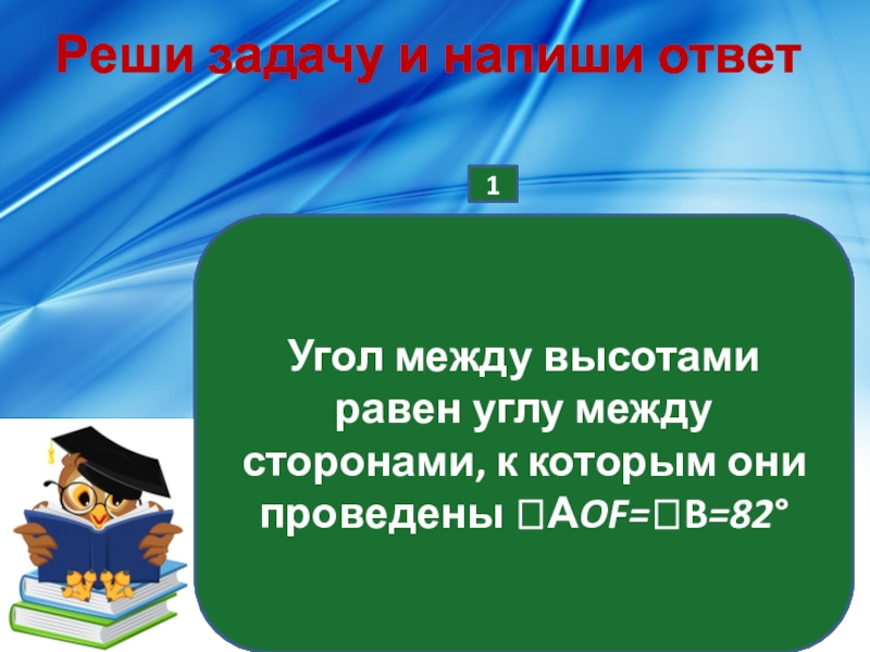 Угол между высотами равен углу между сторонами, к которым они проведены ꓡАOF=ꓡB=82°