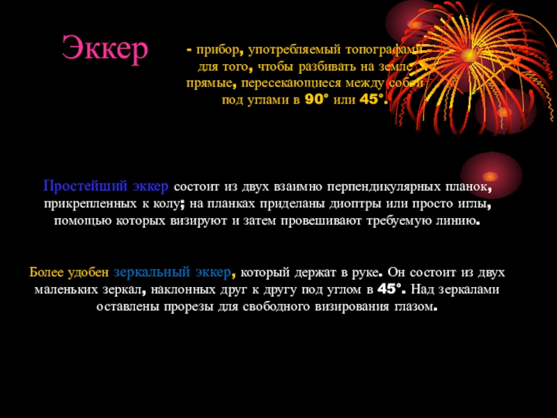 - прибор, употребляемый топографами для того, чтобы разбивать на земле прямые, пересекающиеся между собой под углами в 90° или 45°.