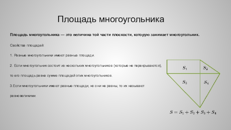 Площадь многоугольника — это величина той части плоскости, которую занимает многоугольник.