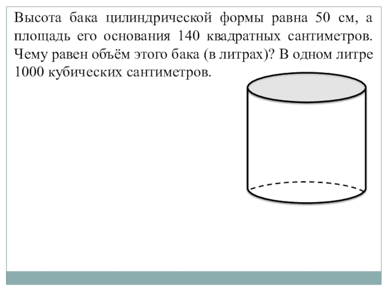 2. Диаметр цилиндра равен 2 м, высота – 6 м. Найти объём цилиндра.