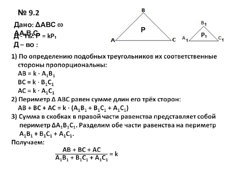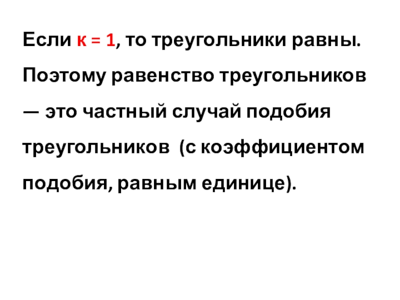 Слайд 19Если к = 1, то треугольники равны. Поэтому равенство треугольников —