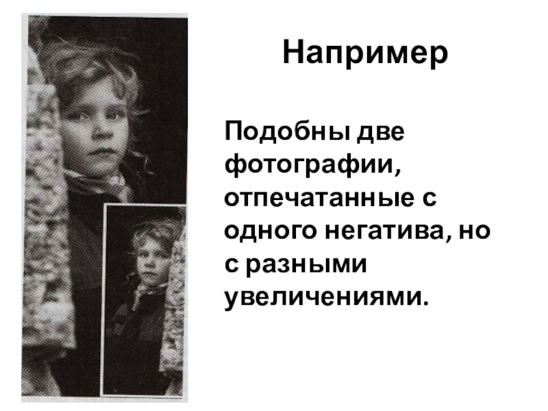 Подобны две фотографии, отпечатанные с одного негатива, но с разными увеличениями.