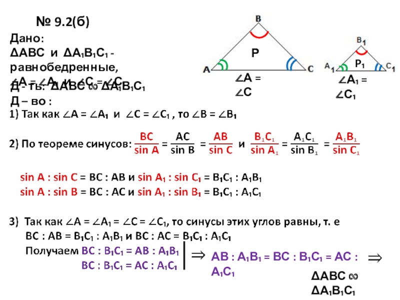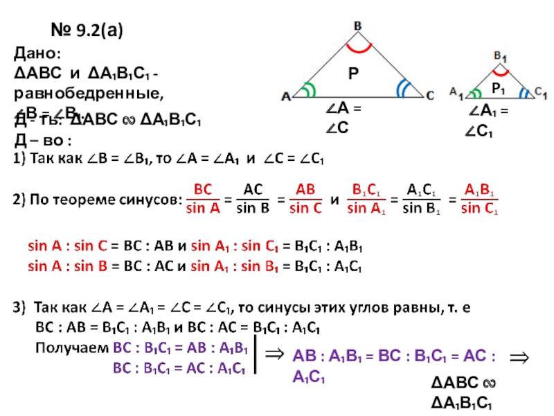 3) sin A = ВС : АB, sin A₁ = В₁С₁ : А₁B₁.