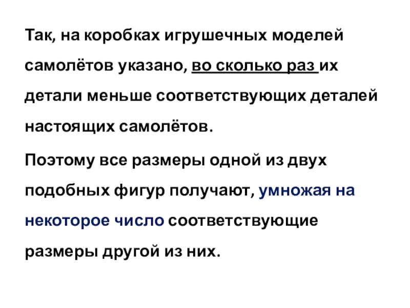 Слайд 10Так, на коробках игрушечных моделей самолётов указано, во сколько раз их