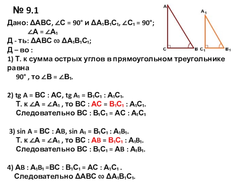 2) tg A = ВС : АС, tg A₁ = В₁С₁ : А₁С₁.