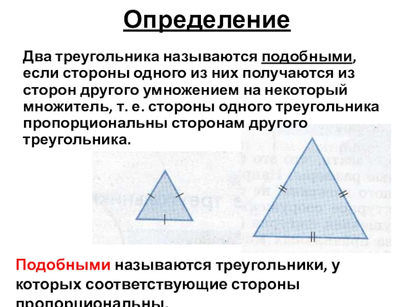Два треугольника называются подобными, если стороны одного из них получаются из