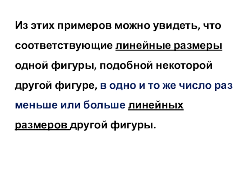 Слайд 9Из этих примеров можно увидеть, что соответствующие линейные размеры одной фигуры,
