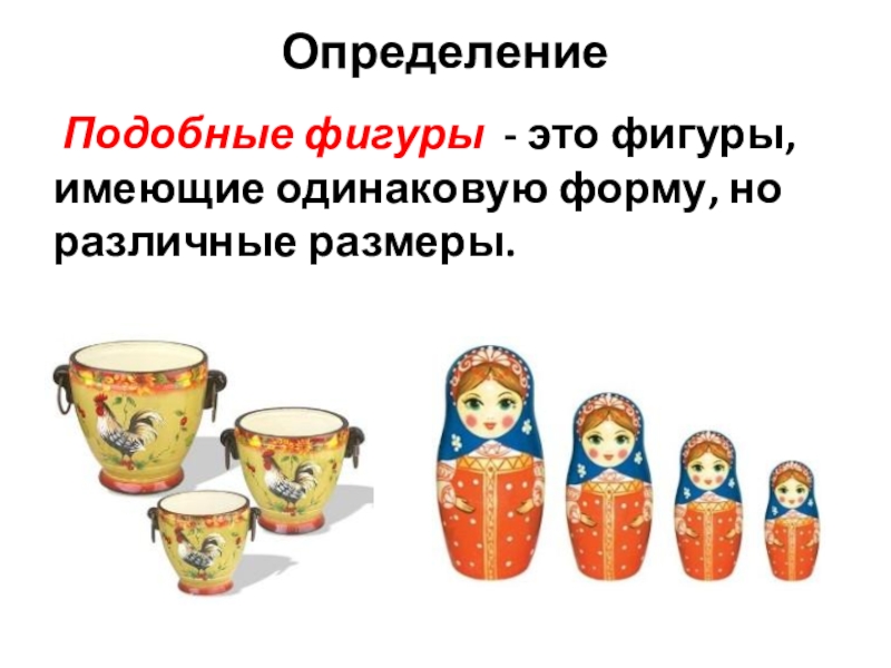 Подобные фигуры - это фигуры, имеющие одинаковую форму, но различные