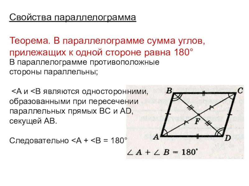 В параллелограмме противоположные стороны и противоположные углы равны.