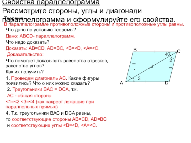 Доказать: АВ=СD, AD=BC, Доказательство: