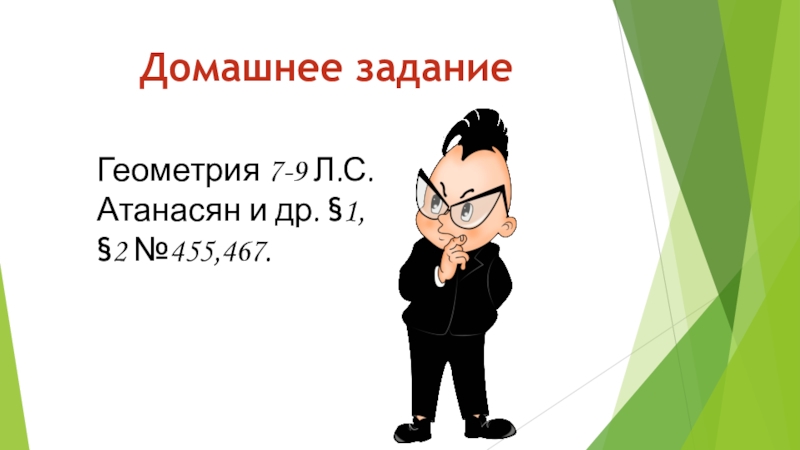 Домашнее заданиеГеометрия 7-9 Л.С.Атанасян и др. §1,§2 №455,467.