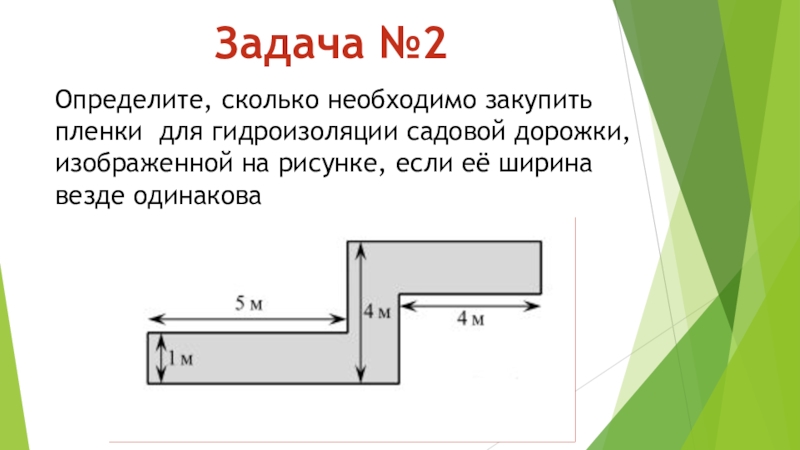 Задача №2Определите, сколько необходимо закупить пленки  для гидроизоляции садовой дорожки, изображенной на рисунке, если её ширина везде одинакова