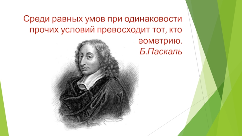 Среди равных умов при одинаковости прочих условий превосходит тот, кто знает геометрию. Б.Паскаль