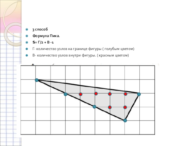 Формула Пика очень удобна когда сложно догадаться, как разбить фигуру на удобные многоугольники или достроить