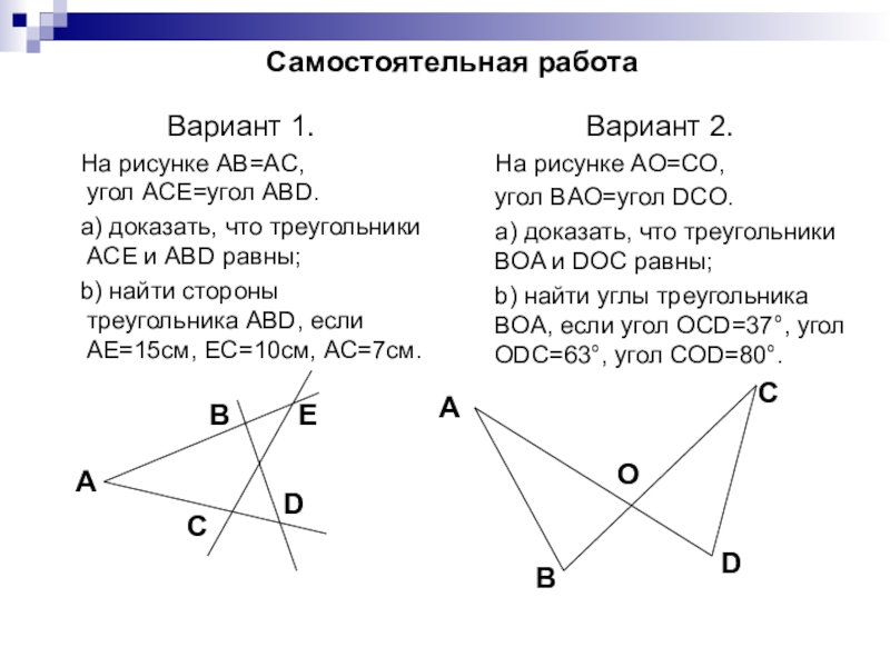 b) найти углы треугольника BOA, если угол OCD=37°, угол ODC=63°, угол COD=80°.