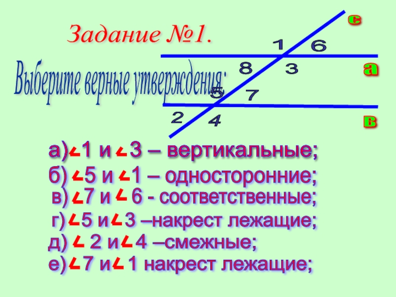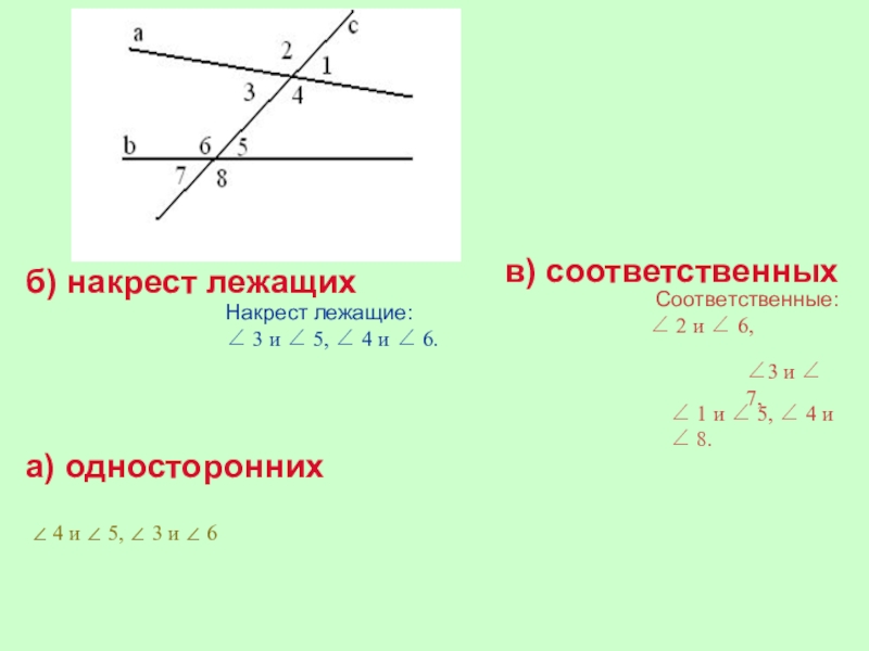∠ 1 и ∠ 5, ∠ 4 и ∠ 8.