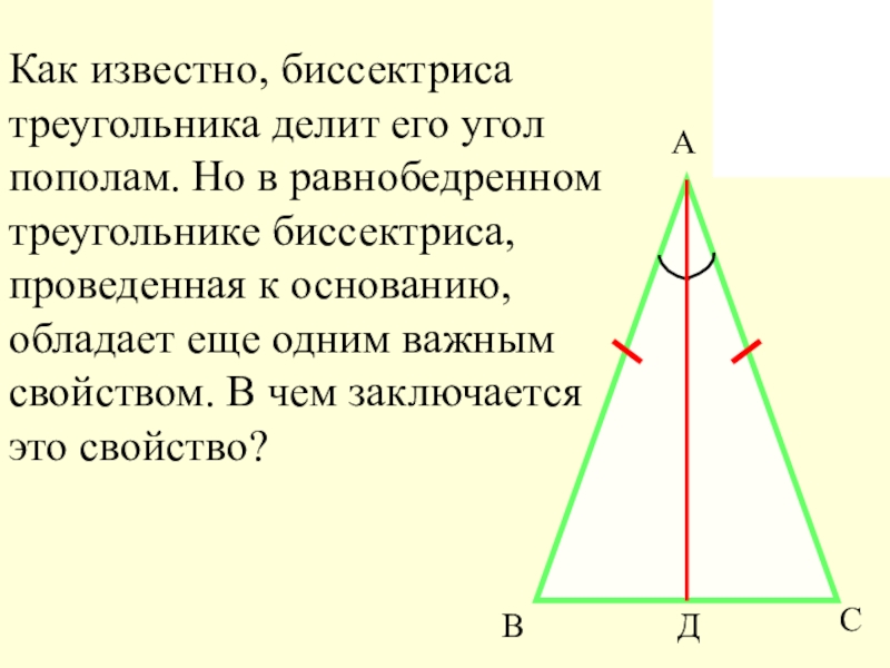 Доказательство: Проведем биссектрису АД из вершины А к основанию ВС.