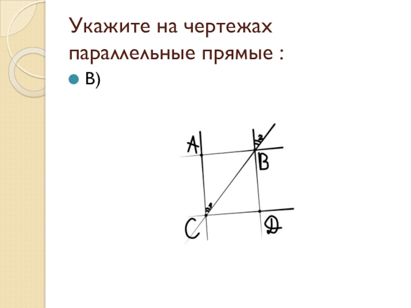 Слайд 4Укажите на чертежах параллельные прямые :