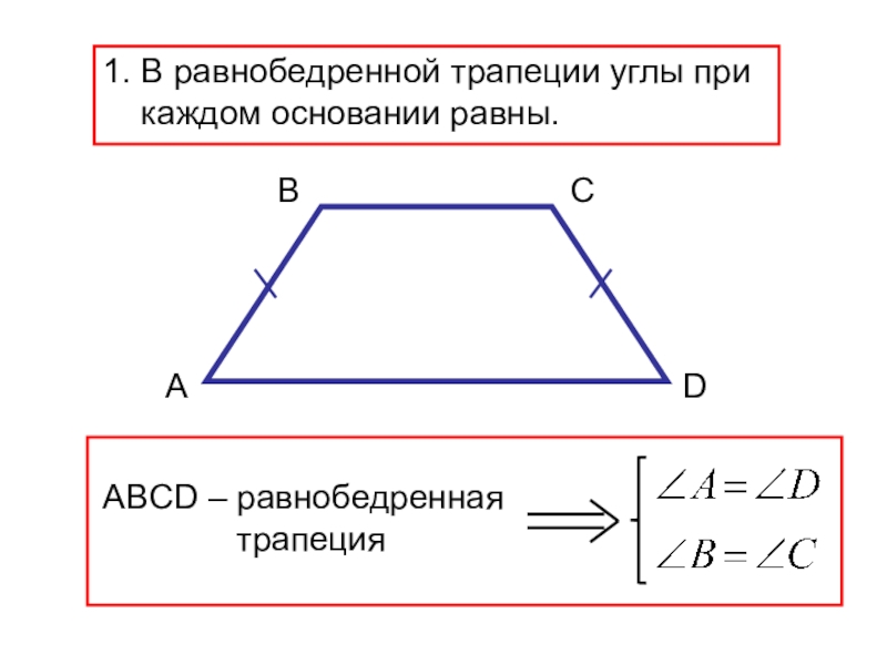 Дано: ABCD – трапеция,          Доказать: АВ = CD.