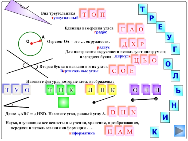 Дано: АВС = НND. Назовите угол, равный углу А.