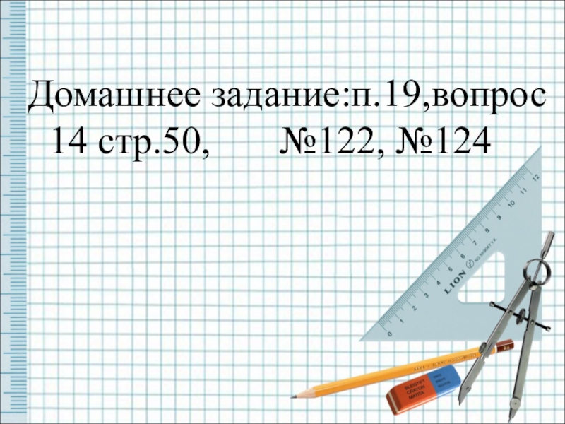 Слайд 14Домашнее задание:п.19,вопрос 14 стр.50, №122, №124