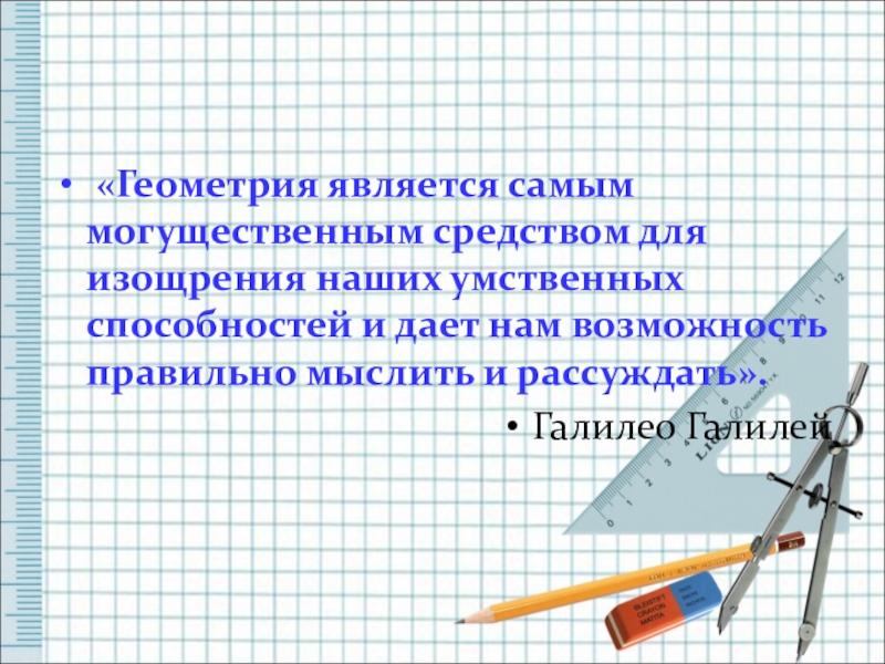 «Геометрия является самым могущественным средством для изощрения наших умственных способностей и дает нам возможность правильно мыслить