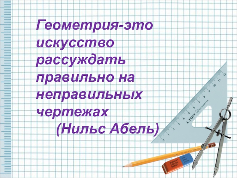 Слайд 5Геометрия-это искусство рассуждать правильно на неправильных чертежах