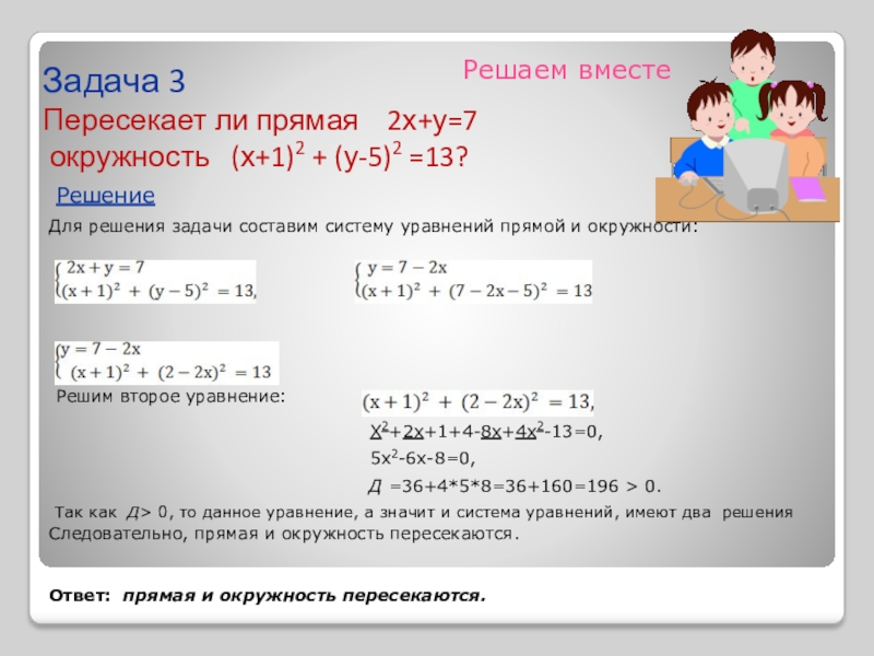 Так как Д> 0, то данное уравнение, а значит и система уравнений, имеют два решения