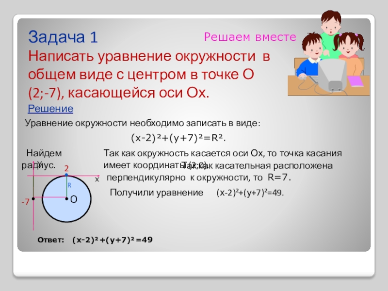 Так как окружность касается оси Ох, то точка касания имеет координаты (2;0).