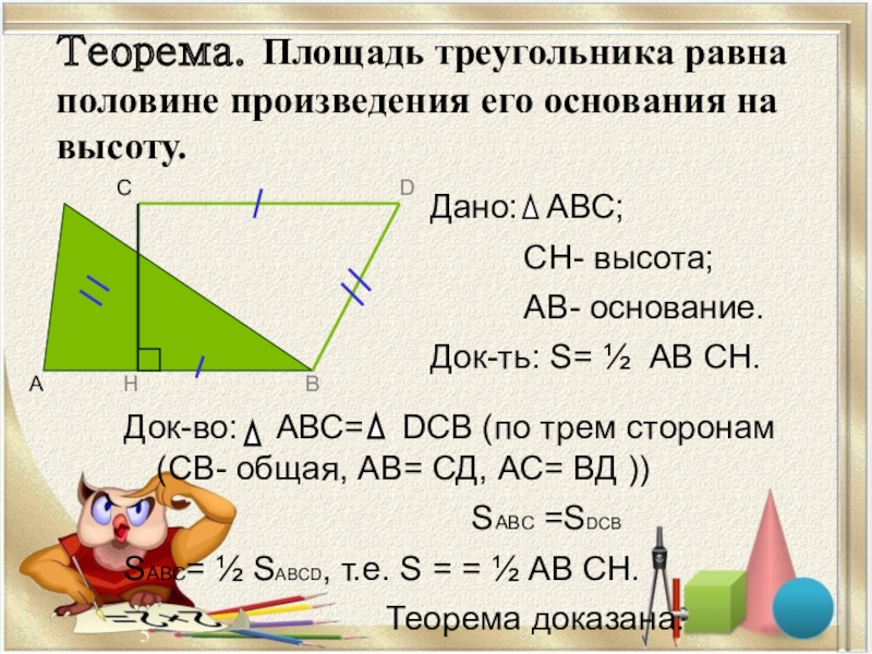 Площадь прямоугольного треугольника равна половине произведения его катетов.