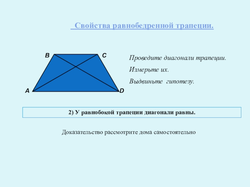 2) У равнобокой трапеции диагонали равны.