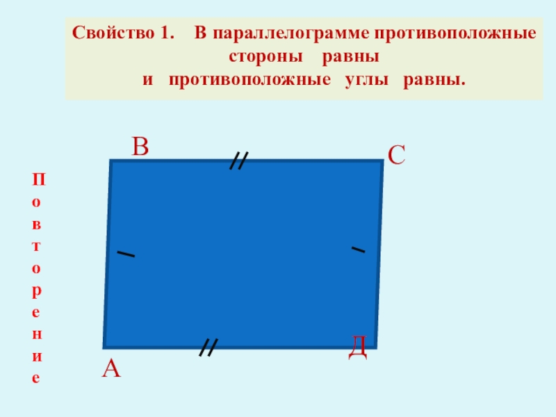 Все свойства параллелограмма,