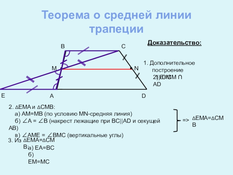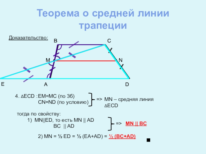 2) MN = ½ ED = ½ (EA+AD) = ½ (BC+AD)