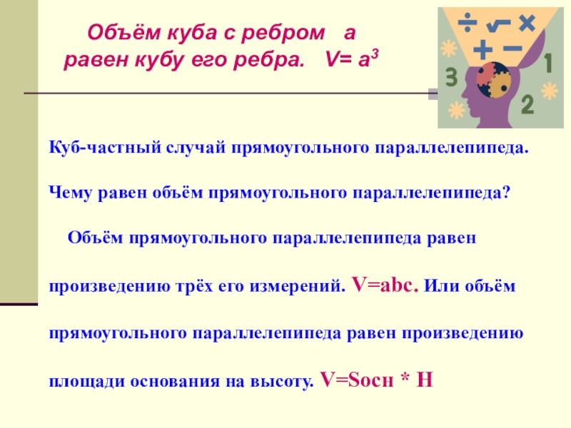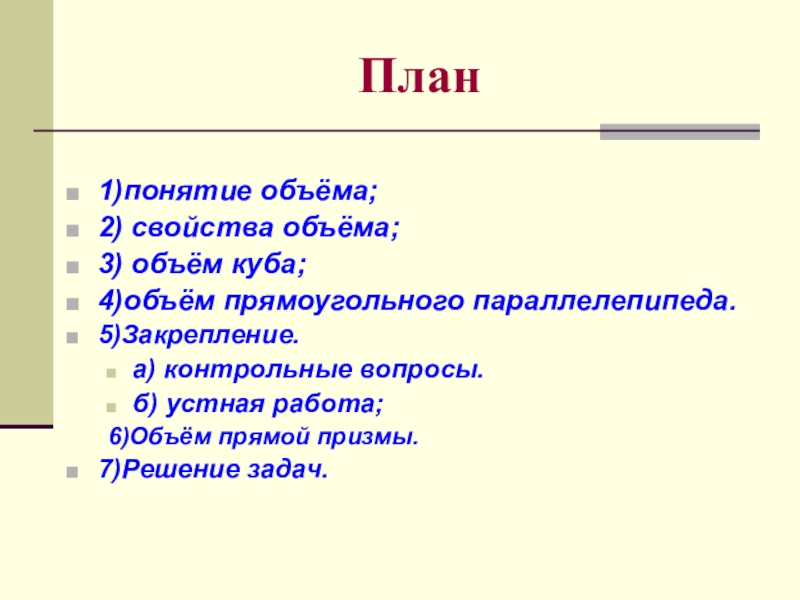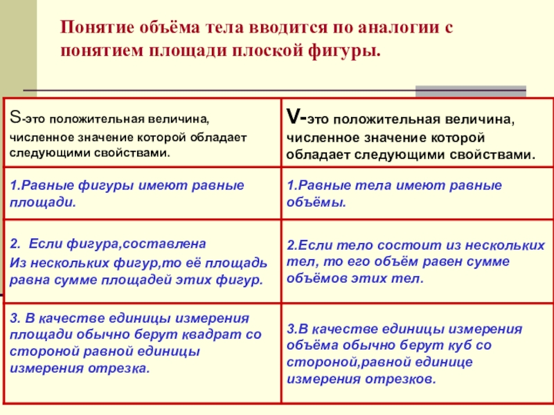 Если тело состоит из нескольких тел, то его объём равен сумме объёмов его частей.