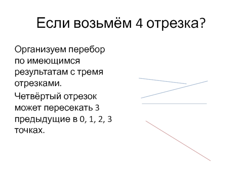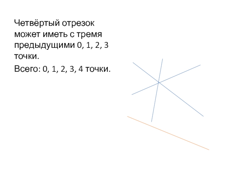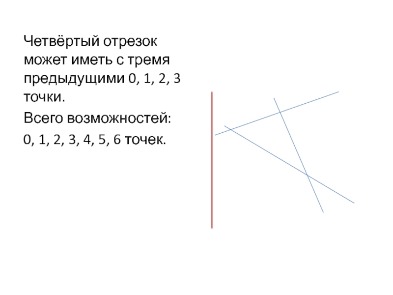 Слайд 8Четвёртый отрезок может иметь с тремя предыдущими 0, 1, 2, 3