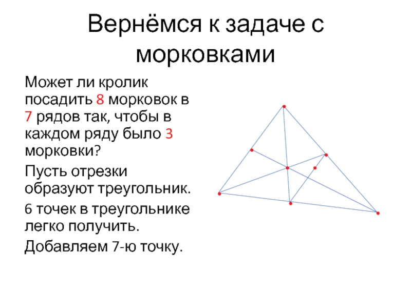 Вернёмся к задаче с морковкамиМожет ли кролик посадить 8 морковок в 7 рядов так, чтобы в каждом