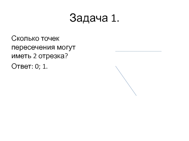 Задача 1.Сколько точек пересечения могут иметь 2 отрезка?Ответ: 0; 1.