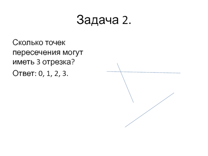 Задача 2.Сколько точек пересечения могут иметь 3 отрезка?Ответ: 0, 1, 2, 3.