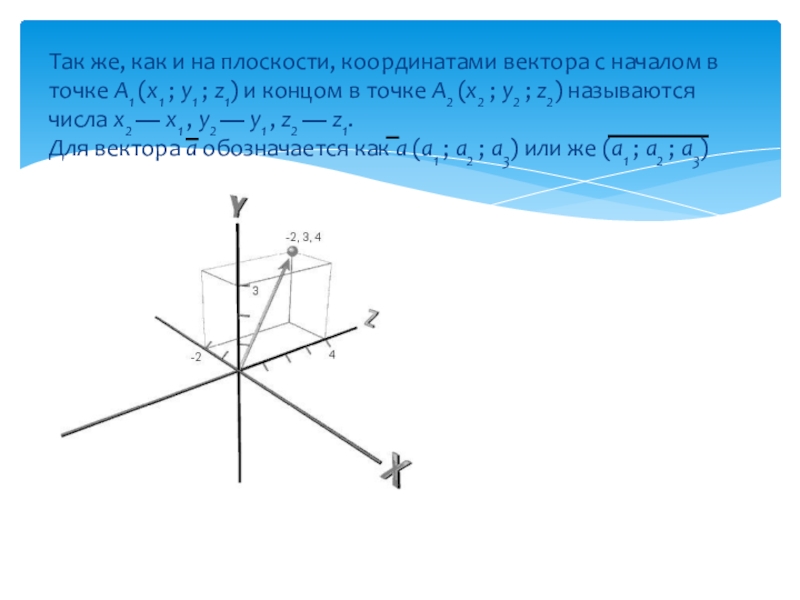 Слайд 5Так же, как и на плоскости, координатами вектора с началом в