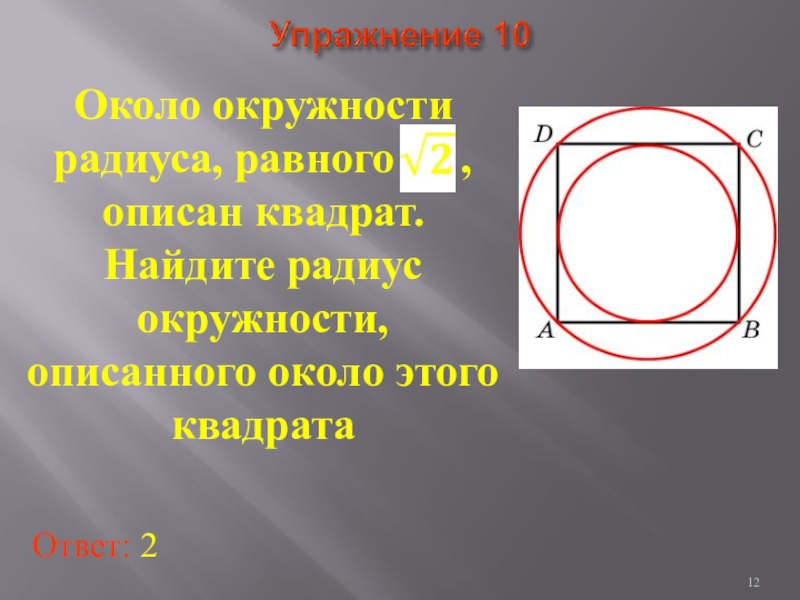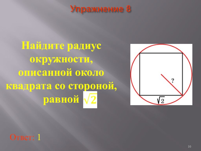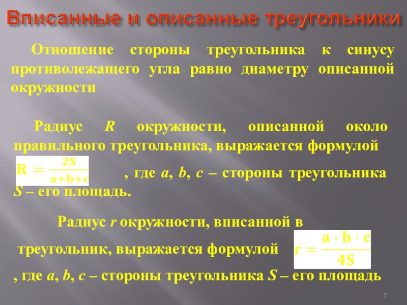 Радиус R окружности, описанной около правильного треугольника, выражается формулой